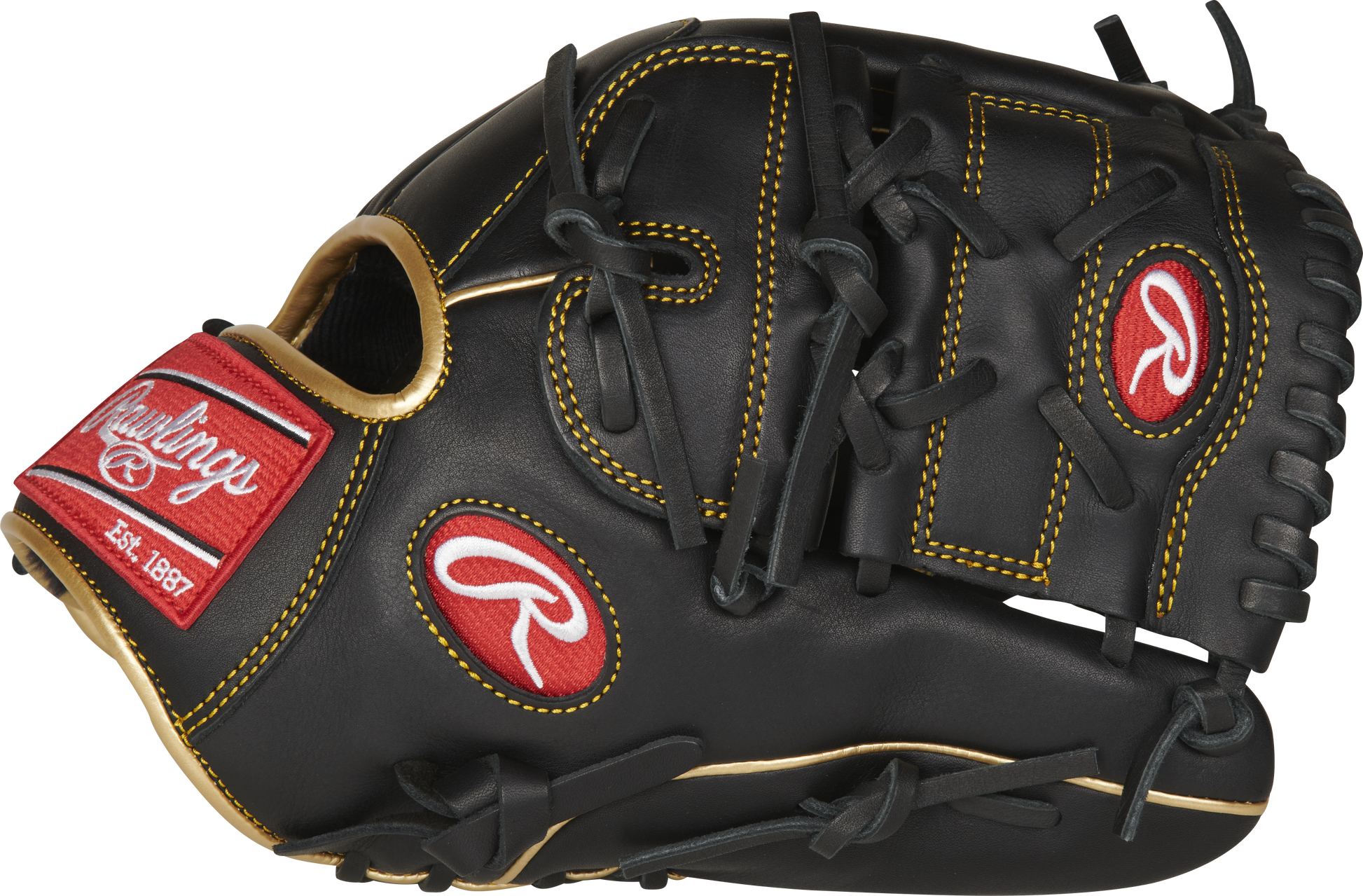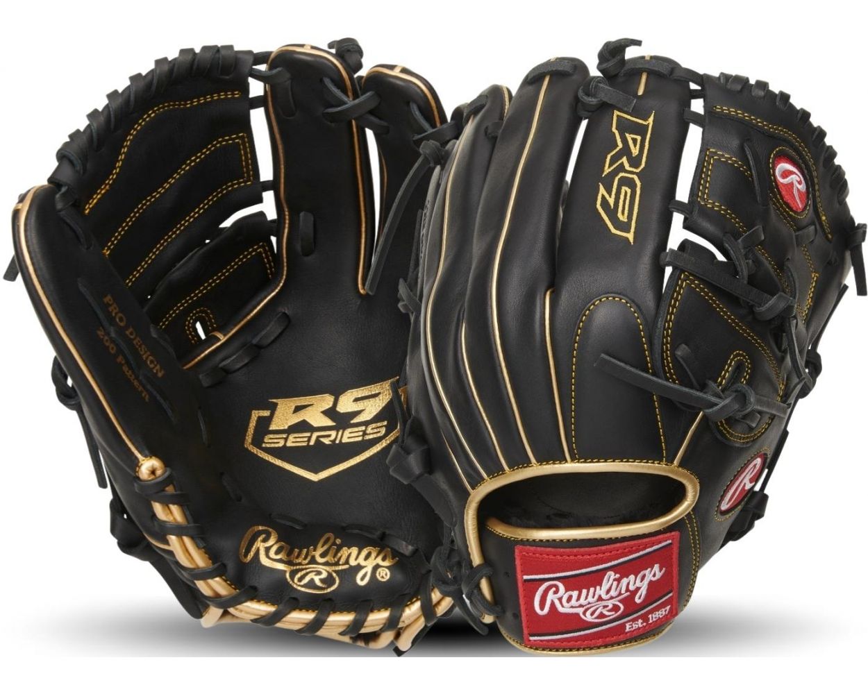 Además, todos nuestros guantes R9 cuentan con forro acolchado en el dorso de los dedos y presillas para el pulgar, además de acolchado reforzado en la palma. Todo esto se combina para brindar a los atletas una comodidad y sensación superiores en cada uso. Este guante también se fabricó con nuestro popular patrón pro-200 con red sólida de dos piezas, lo que lo hace ideal tanto para infielders como para lanzadores. El ribete dorado y el ribete acentúan el cuero negro a la perfección, creando un diseño llamativo que sin duda llamará la atención.